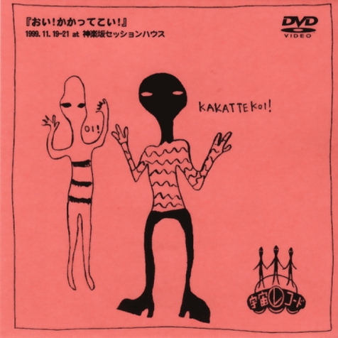 宇宙レコードレアコレクションDVD第3弾も、やっぱり当時行っていたライブシリーズより、1999年11月に神楽坂セッションハウスで行われた「おい!かかってこい!!」を収録。資産家の御曹司「まさる君」を尾行することにした「おさむ君」とキンダーサプライズを買いに行ってはぐれた「しろう君」の3人で繰り広げる人形劇『あの家のひみつ』、「ギーガチャ、ギーガチャ、ギ~」厚底ブーツのサチコ君のコピーダンスがさく烈する『アメリカナイズドジャパン』、他にある家族3人の食卓の風景を描いた『杞憂』、「魔性の女キャロル」「永遠にタンゴ・フラメンコ」「Mr.プーのアルバイト大作戦」「男女はつらいよ」など2000年にロードショー予定(?)の映画の予告を一挙公開の『映画予告』や、『作家先生』『クリスマスの夜に』など、2000年問題を考える年末にふさわしい内容のライブを収録。それにしても3人が若いです。
