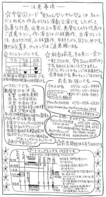 今回宇宙レコード公演が初の京都での公演となりまして、ごあいさつさせて頂きます。